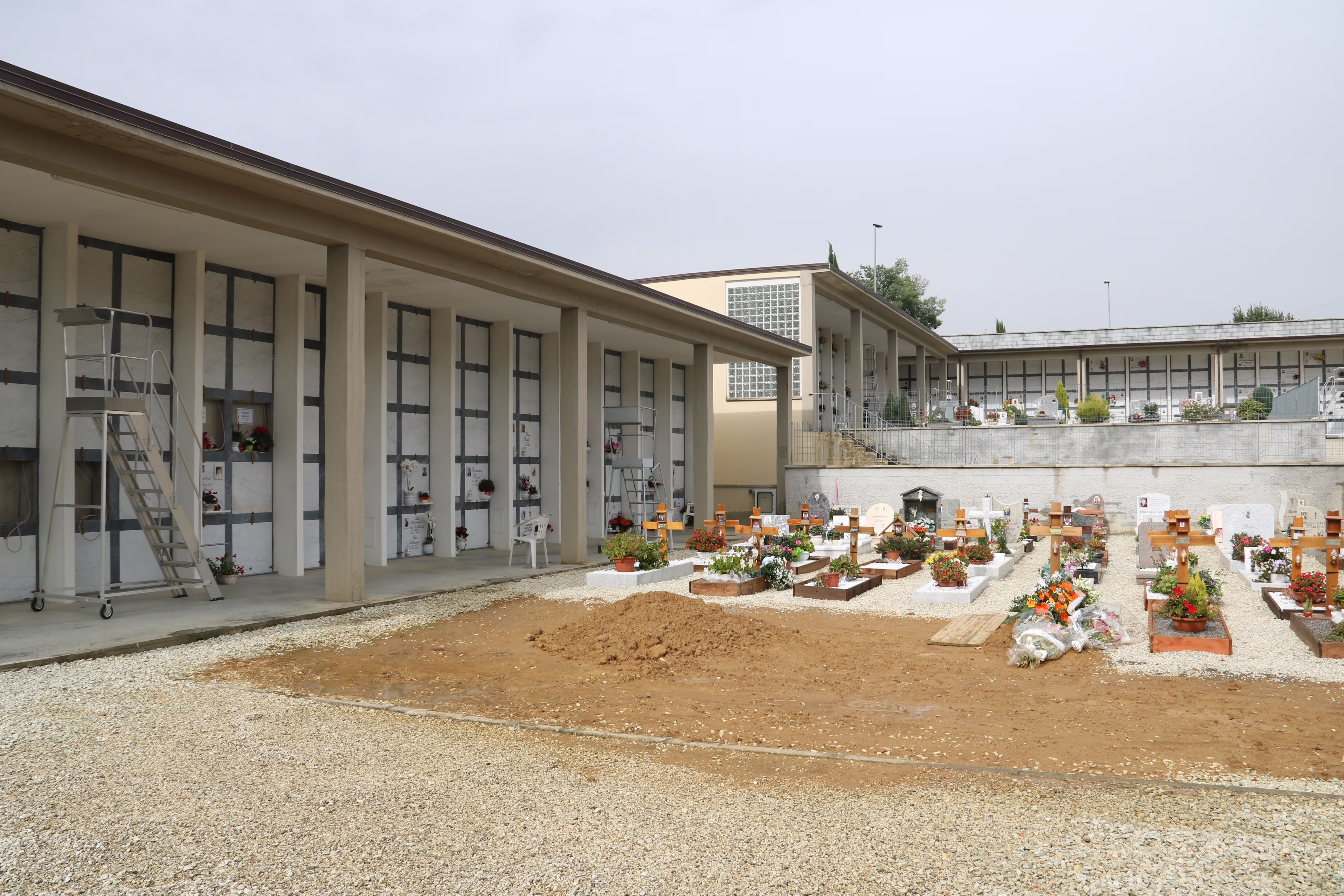 L’intervento ha comportato una complessa opera di sbancamento e preparazione del terreno, propedeutica alla realizzazione delle fondazioni per le stecche dei loculi e per i corpi accessori. Sono stati costruiti muri di contenimento in cemento armato a sostegno del terreno collinare e di una strada rurale limitrofa, con relativa integrazione nel contesto paesaggistico.