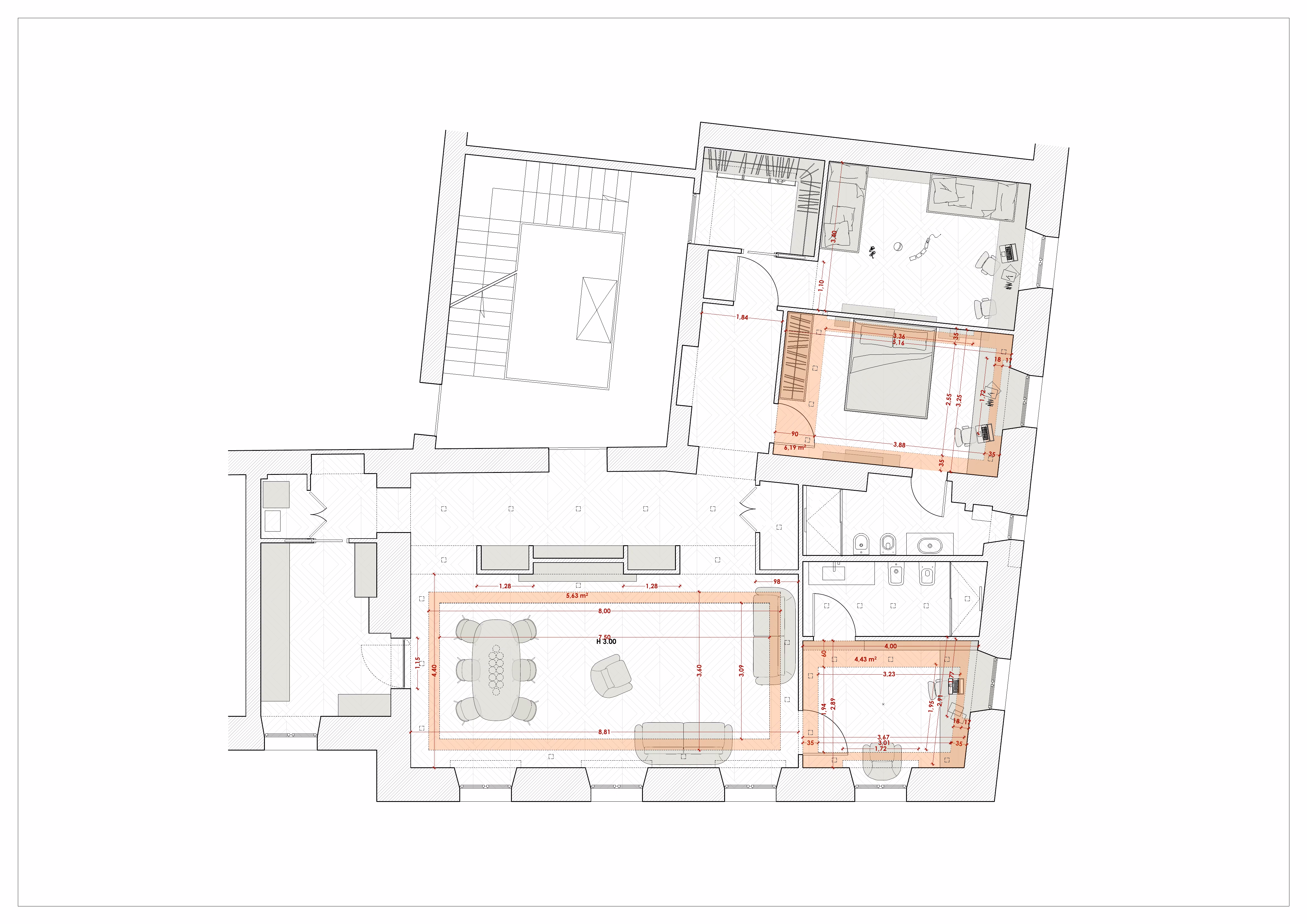 Alla DRD è stata affidata l’esecuzione di alcune opere edili e impiantistiche necessarie a preparare gli ambienti per le nuove finiture e gli arredi su misura previsti dal progetto. L’intervento è stato svolto con attenzione millimetrica, così da garantire al progettista e alle maestranze coinvolte un’impostazione solida e precisa su cui lavorare.