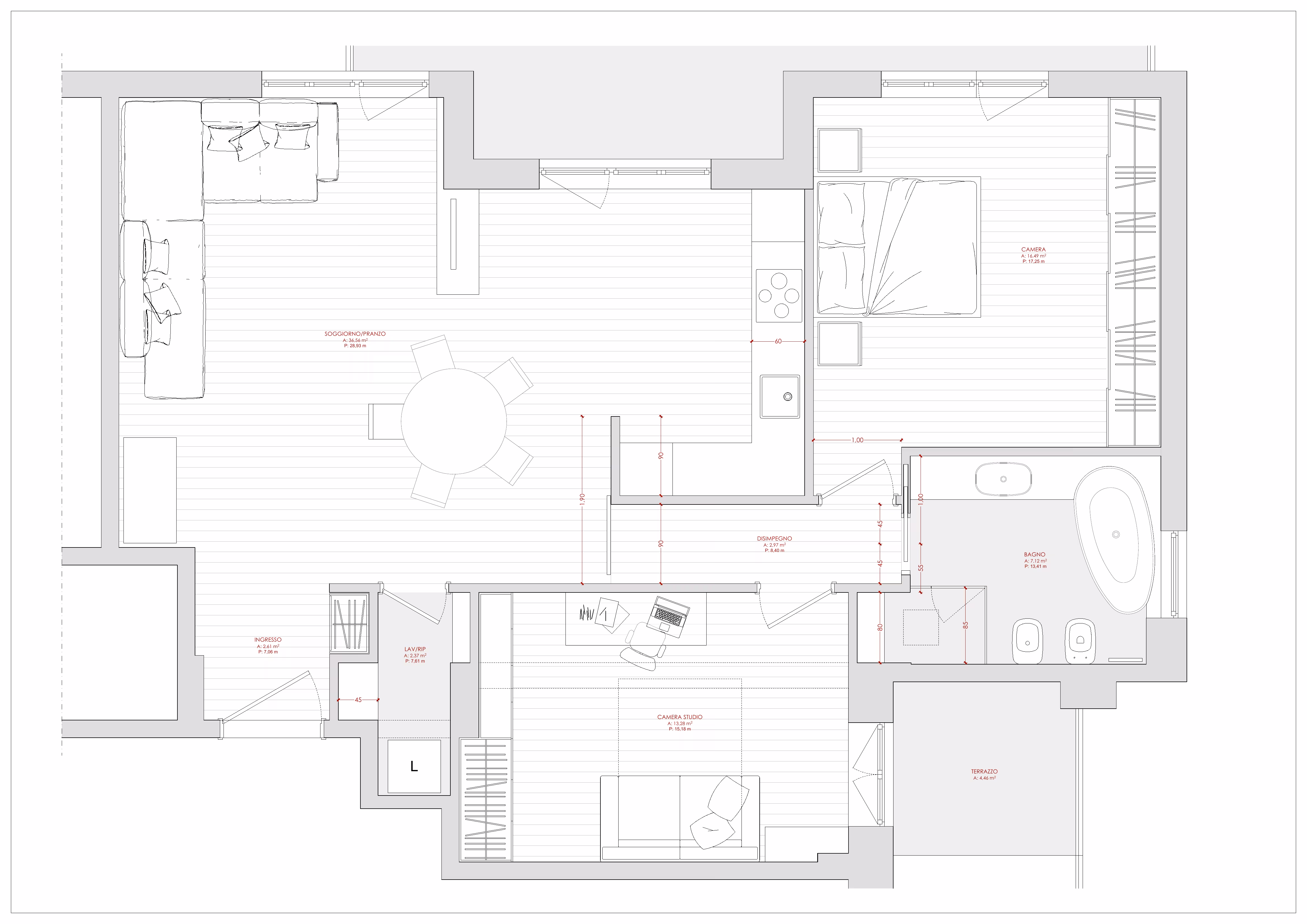 Il progetto nasce da un sopralluogo durante il quale il cliente ci mostrò una proposta di ristrutturazione redatta da un geometra, con la nuova distribuzione degli spazi interni. Sin da subito, esprimemmo alcune perplessità: quella soluzione rischiava di non valorizzare l’immobile né l’investimento previsto. Con grande rispetto, suggerimmo al cliente di valutare il supporto di uno studio di progettazione capace di proporre una visione più coerente e raffinata.