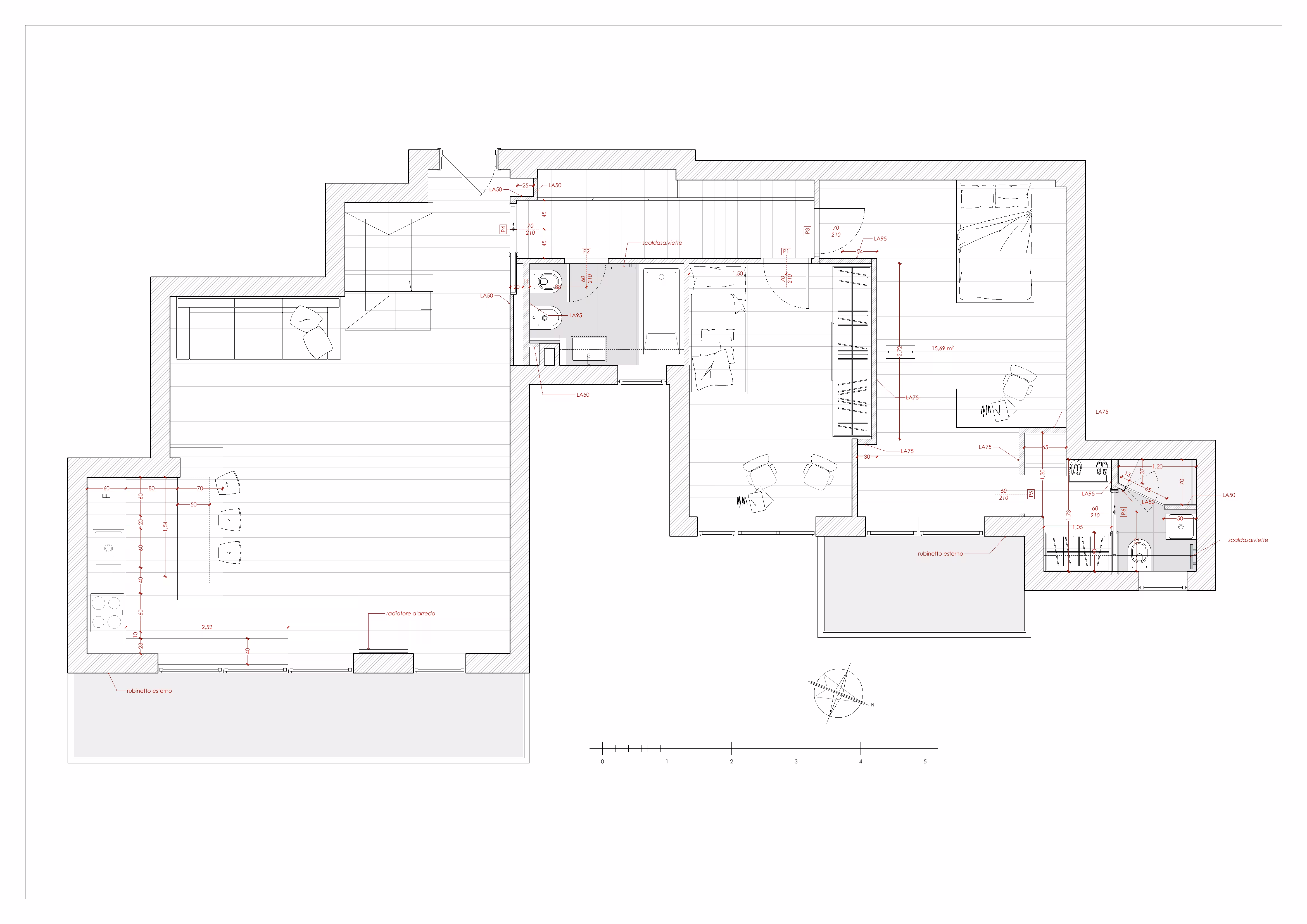 L’intervento ha interessato ogni aspetto dell’abitazione: dal rifacimento integrale degli impianti elettrici e idrico-sanitari alla redistribuzione degli spazi interni, fino alla posa delle nuove pavimentazioni in legno e delle finiture di pregio.