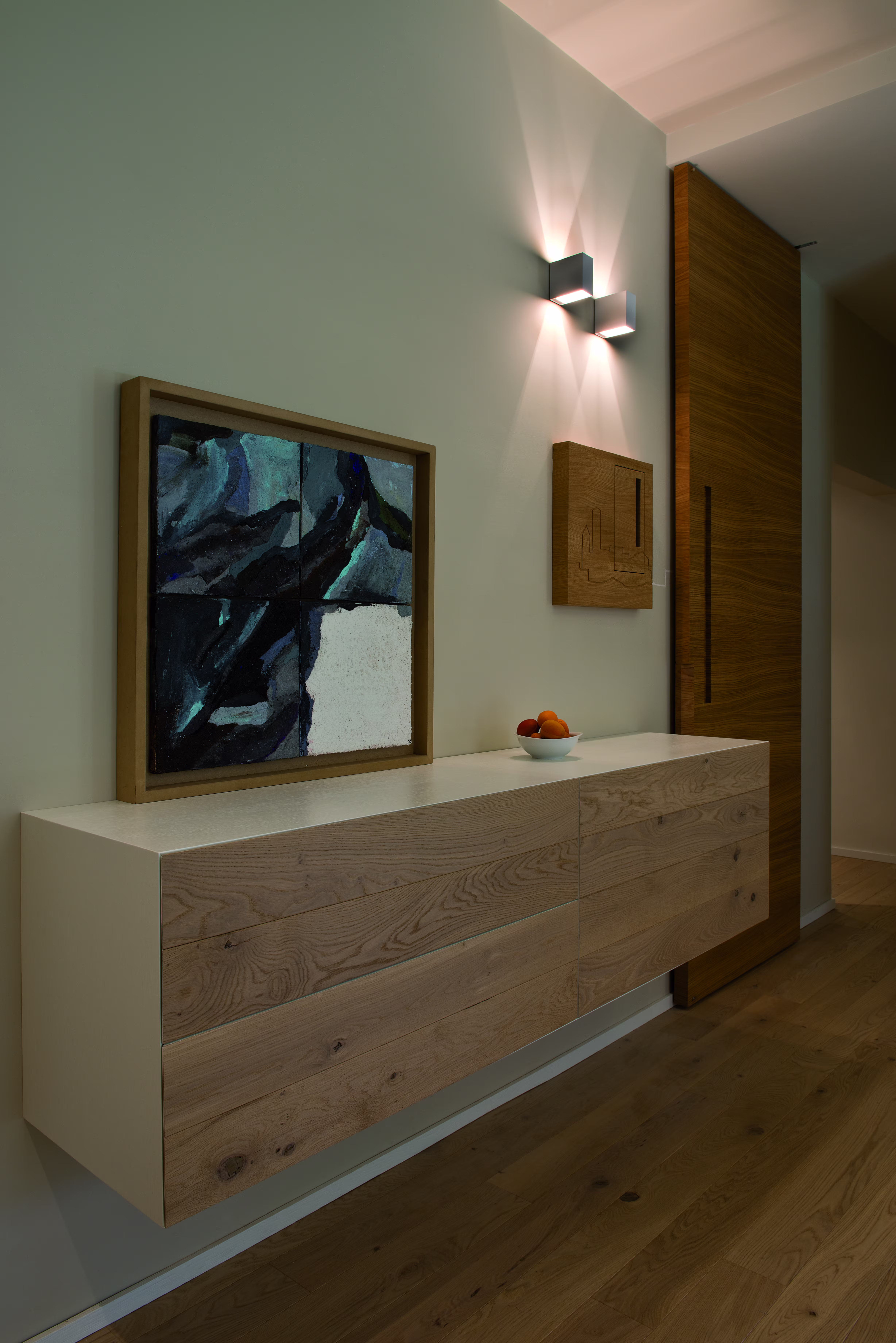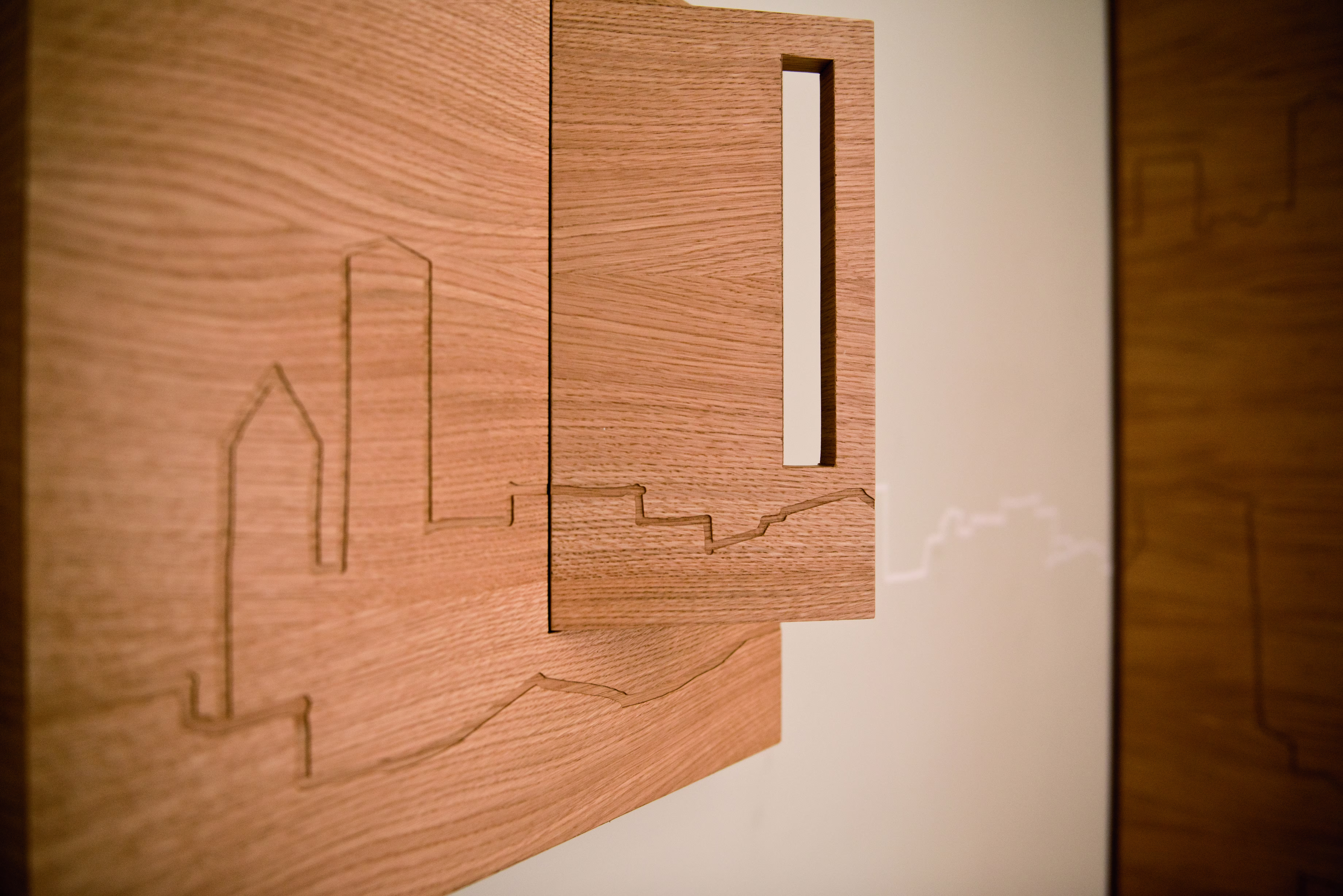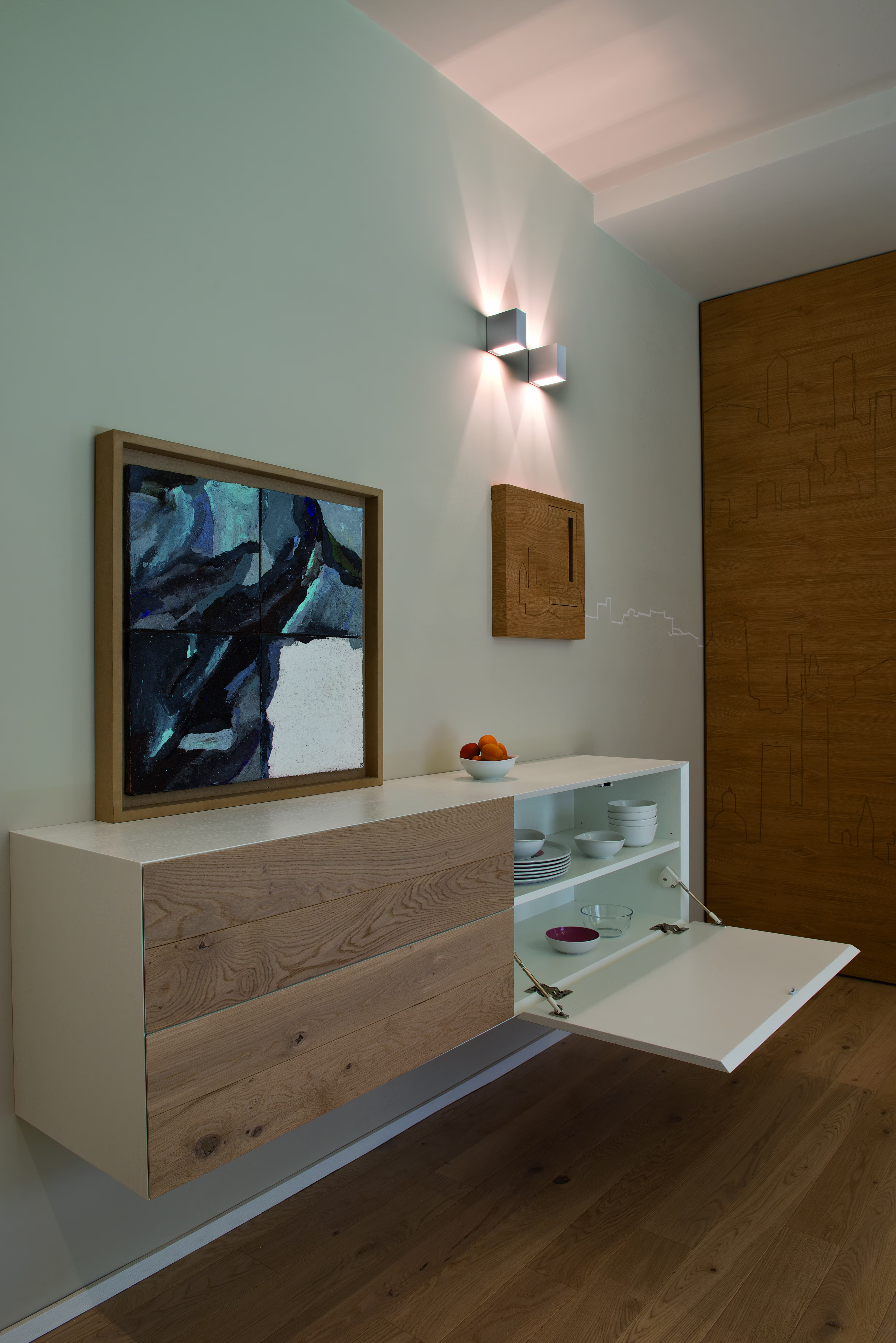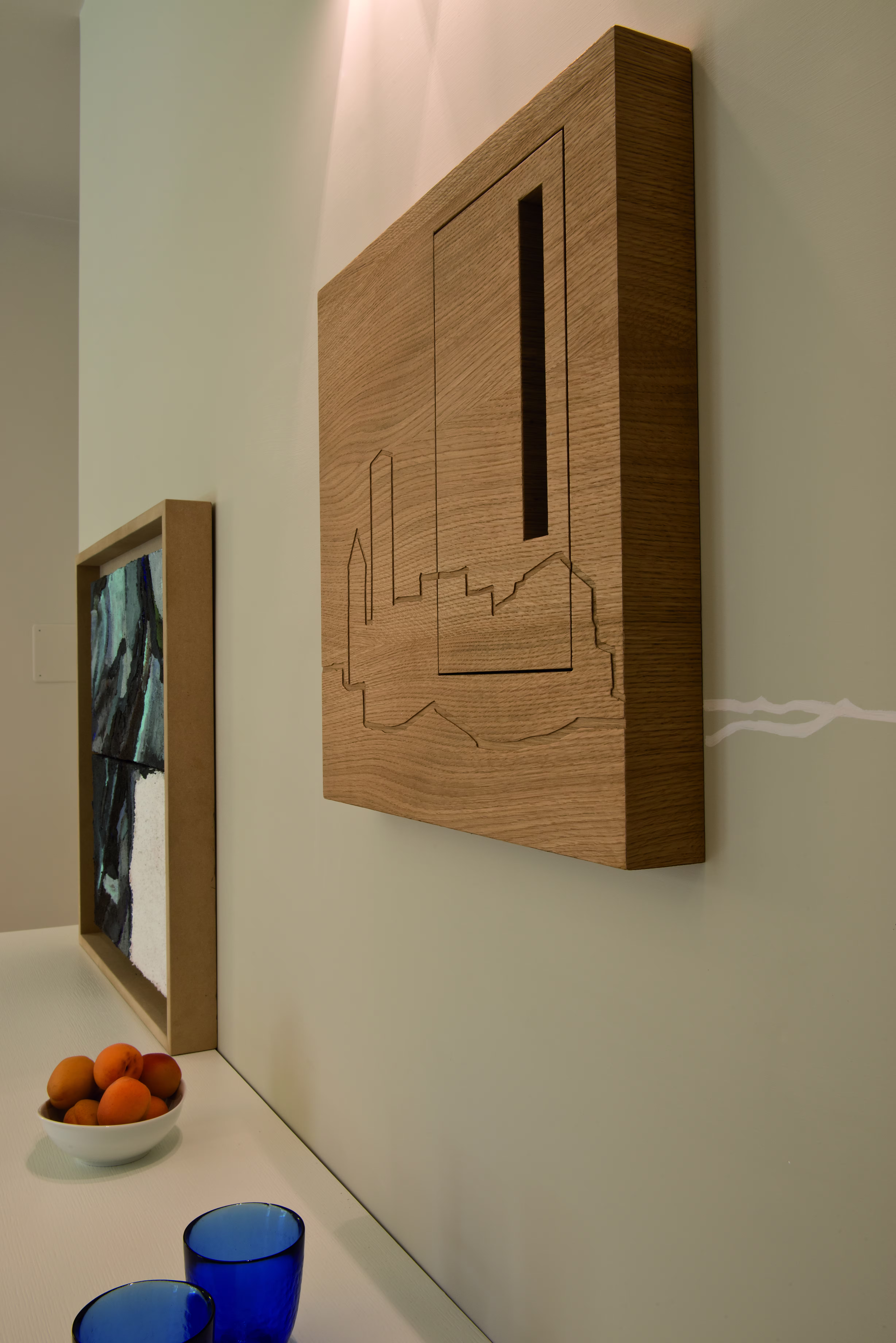- Montaggio madia e quadro scultoreo in rovere con integrazione dello skyline