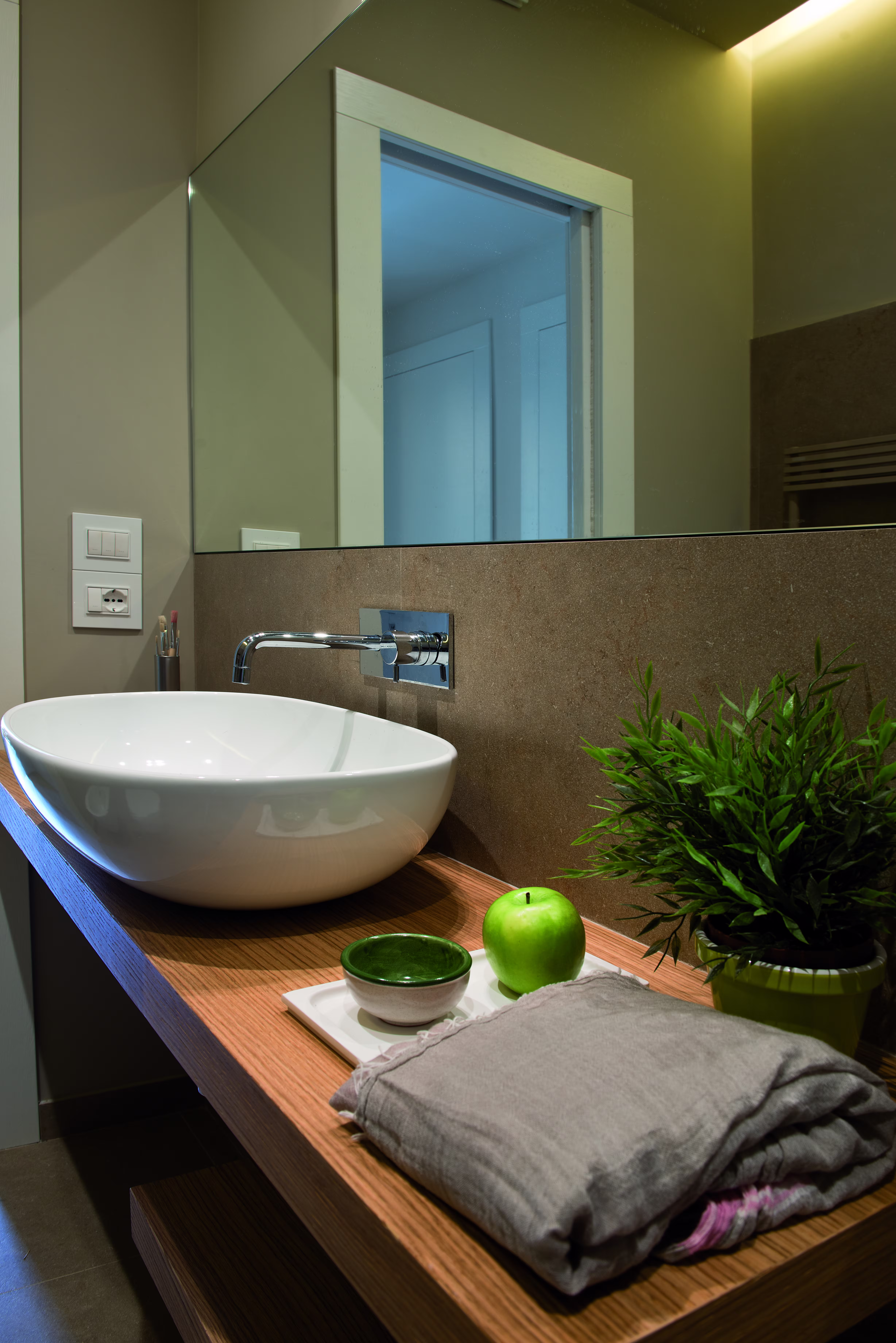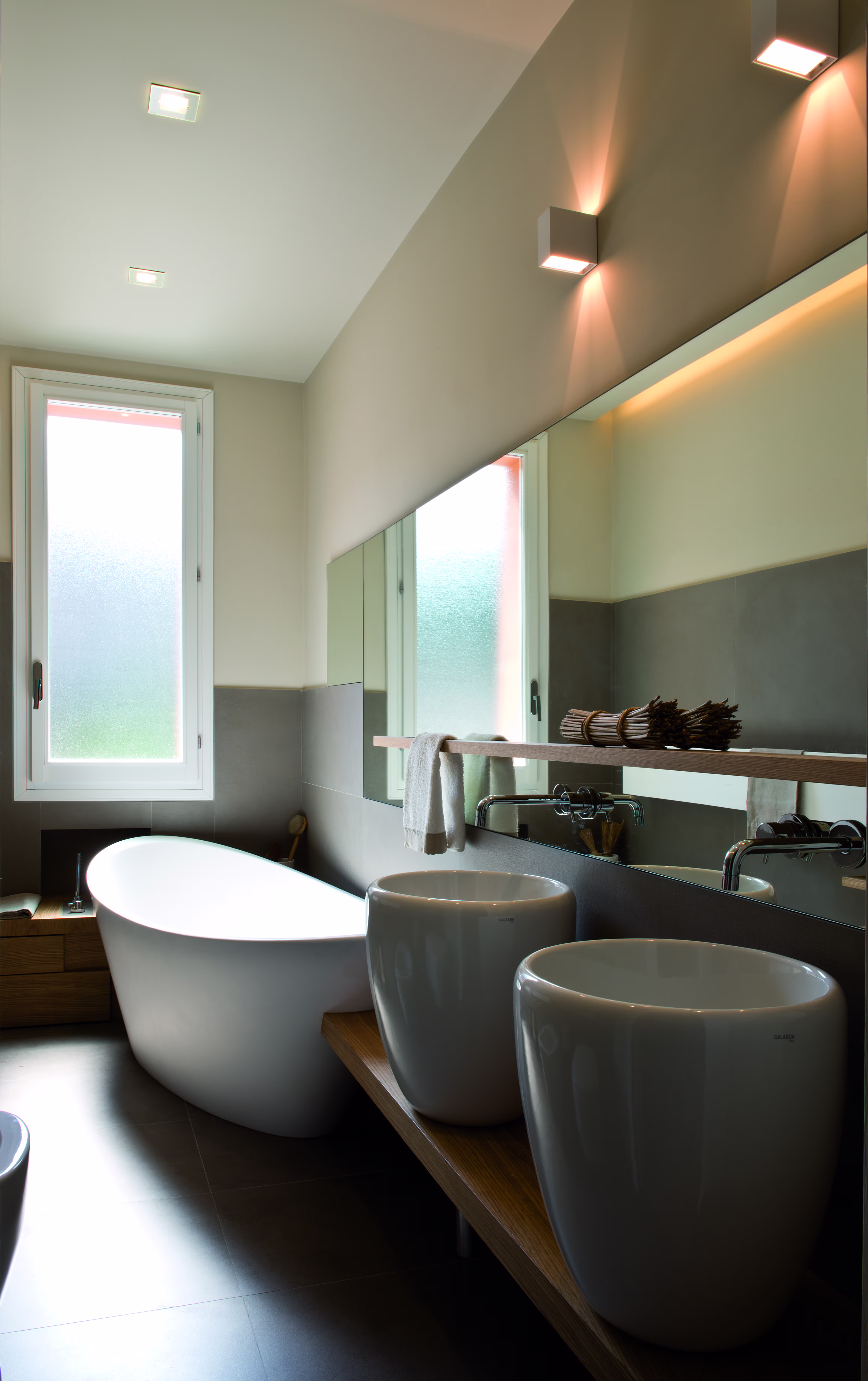 - Il bagno senza finestre è stato trasformato in un piccolo hammam domestico, curando la scelta di materiali e luci in modo da renderlo accogliente e rilassante nonostante l’assenza di luce naturale.