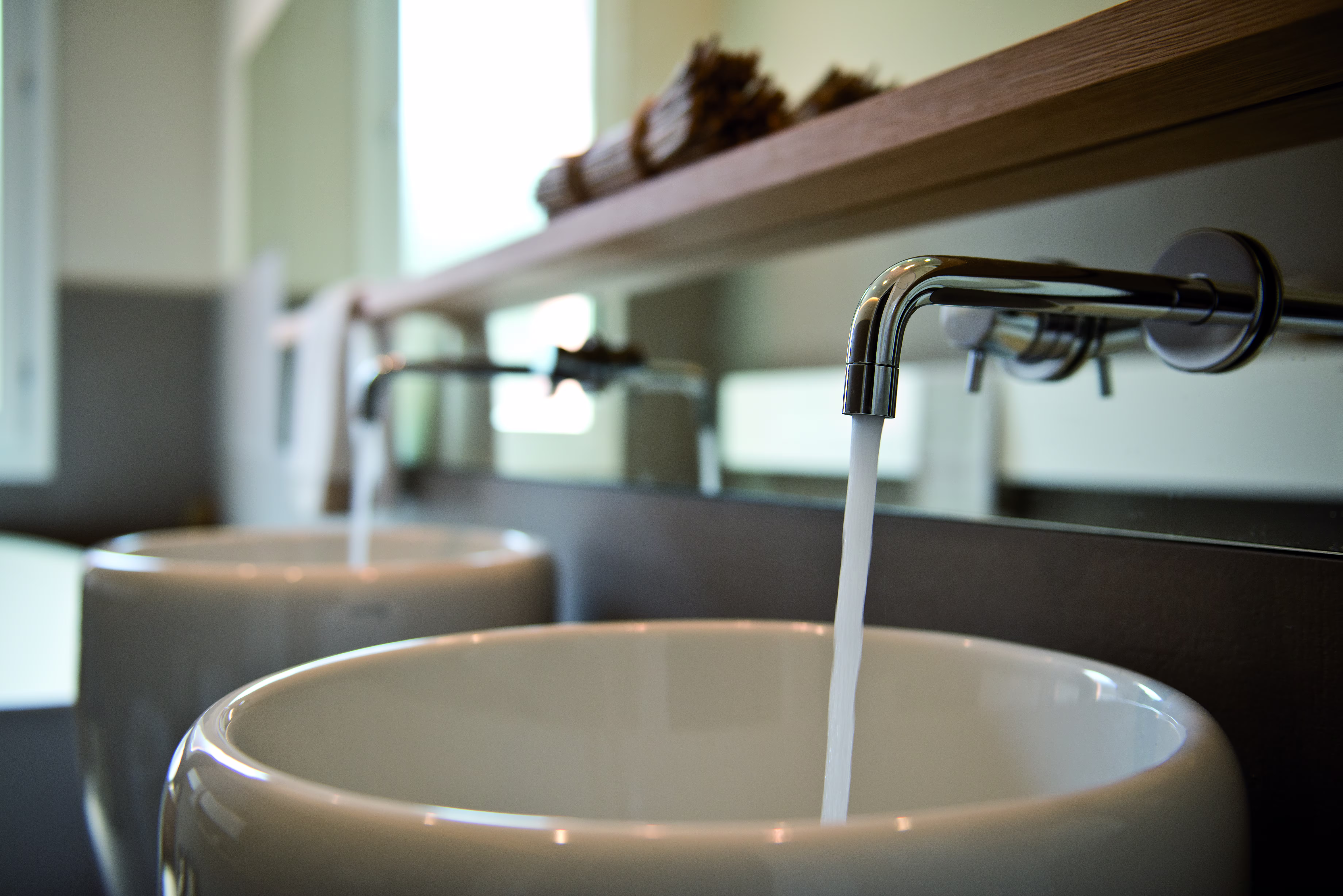 - Realizzazione bagni con rivestimenti materici e arredi su misura