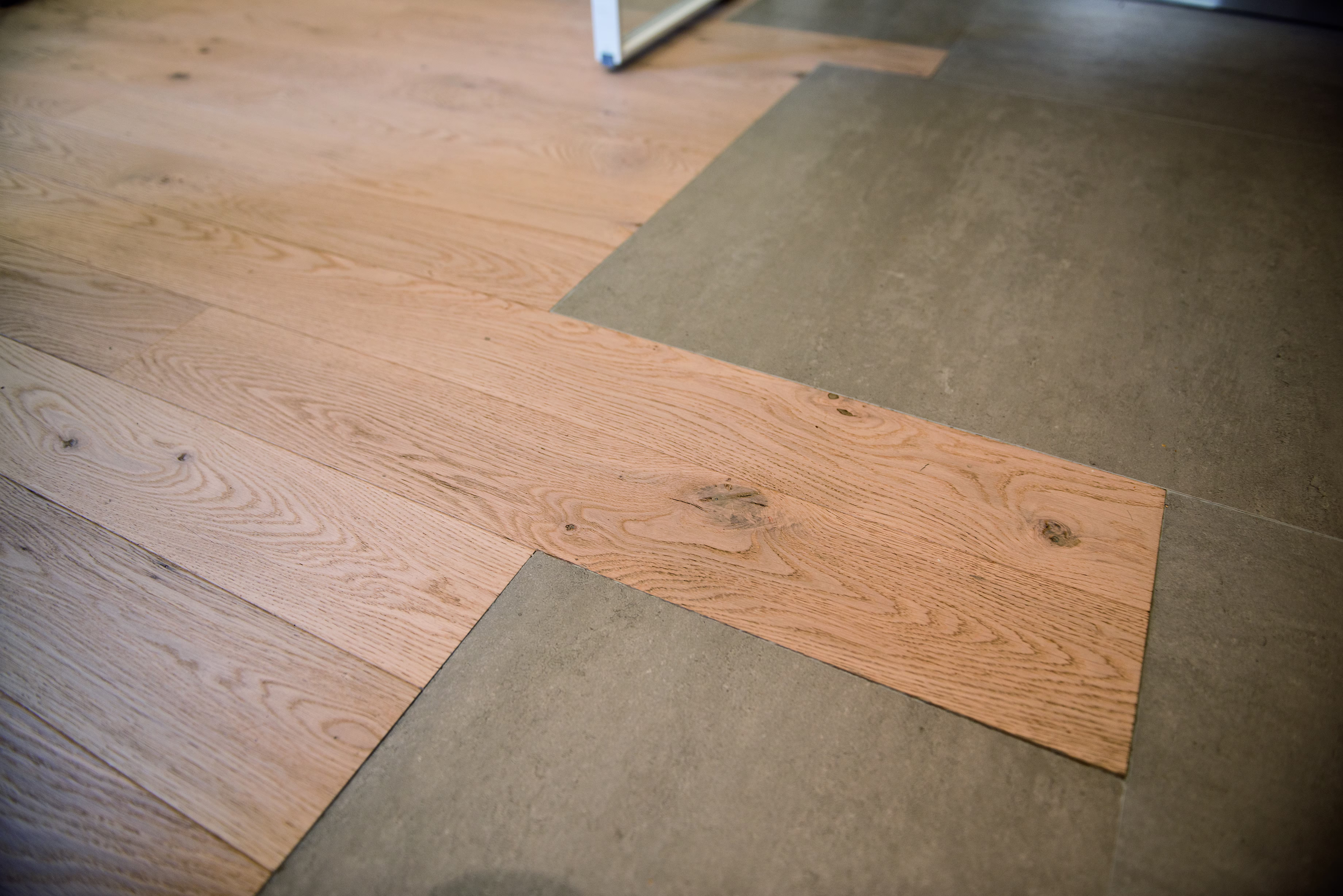 - Posa parquet in rovere naturale e raccordi con elementi d’arredo